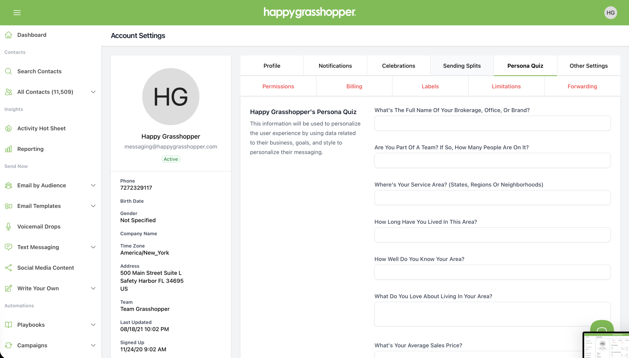 The Persona Quiz helps personalize your messaging experience inside Happy Grasshopper.